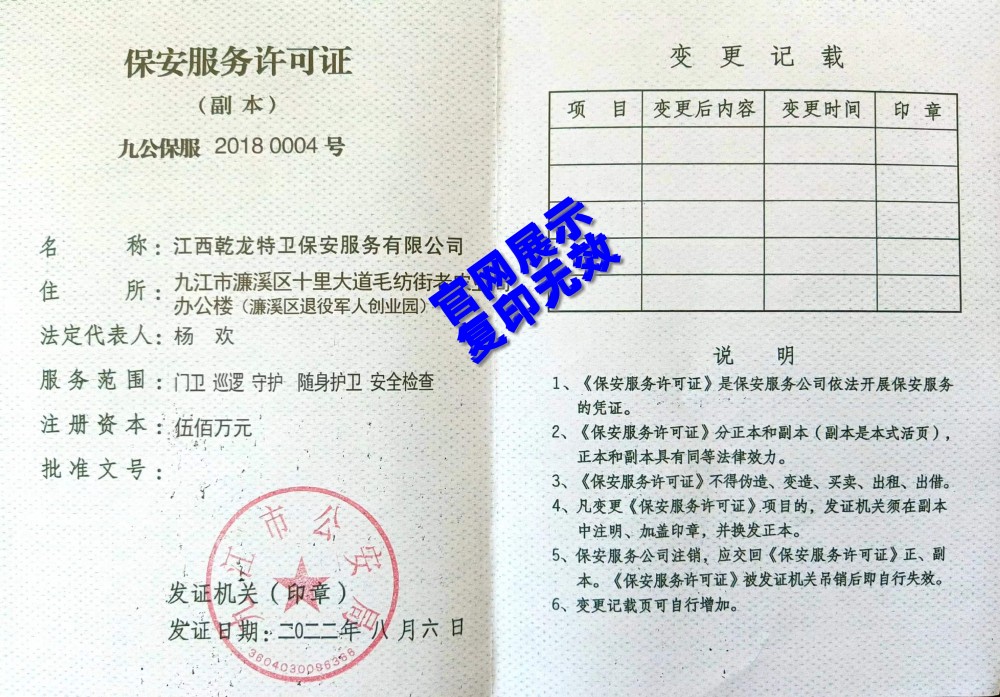 保 安 服 务 许